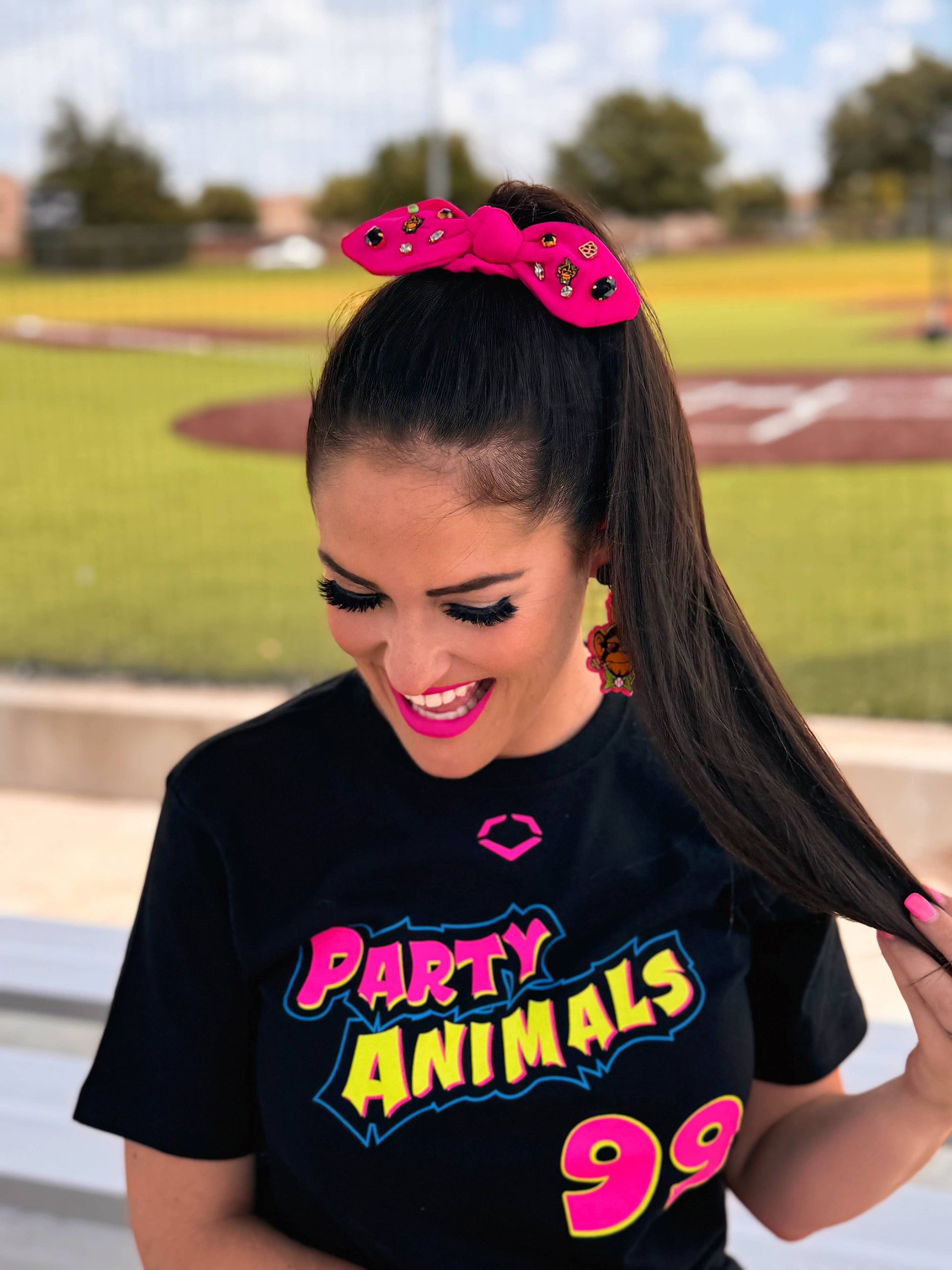 Party Animals Pink Logo Bow Scrunchie